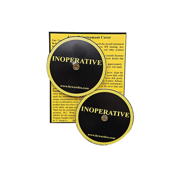 ce cache-instrument est un disque en plastique d’environ 7 cm de diamètre pour 1,5 mm d’épaisseur. Équipé d’une ventouse, il permet de masquer efficacement la majorité des instruments de vol utilisés en aviation générale.