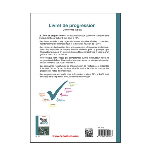 Ce livret est inclus dans la mallette du pilote privé d'avion mais peut être vendu séparément.