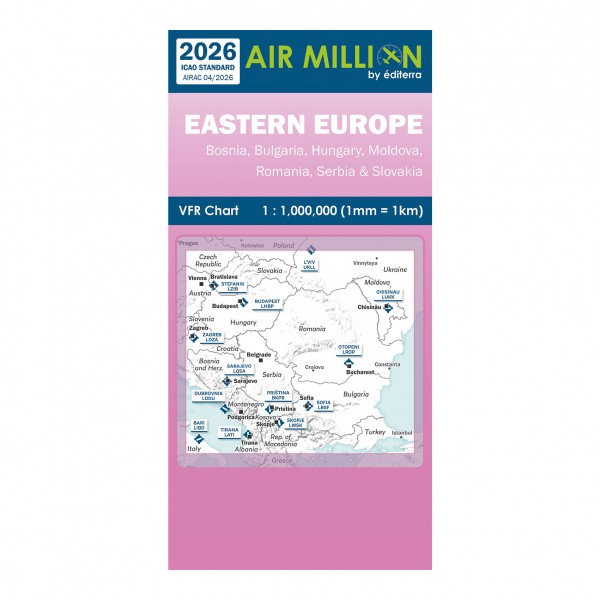 La carte Air Million Europe de l'Est 2026 comporte à l’échelle du 1:1 000 000, l’intégralité de la Roumanie, la Hongrie, la Slovaquie, la Serbie, la Bulgarie, la Macédoine et la Bosnie Herzégovine ainsi que la majeure partie de l’Ukraine.