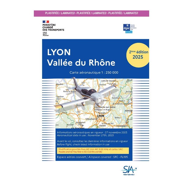 Cette carte aéronautique VFR appelée Lyon - Vallée du Rhône couvre une zone rectangulaire délimitée :