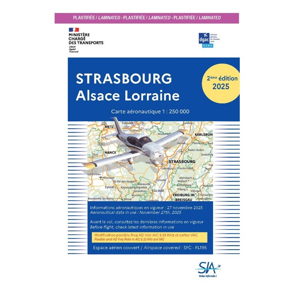 Carte VFR SIA 2025 au 1:250 000 - Strasbourg, Alsace Lorraine - 2e édition