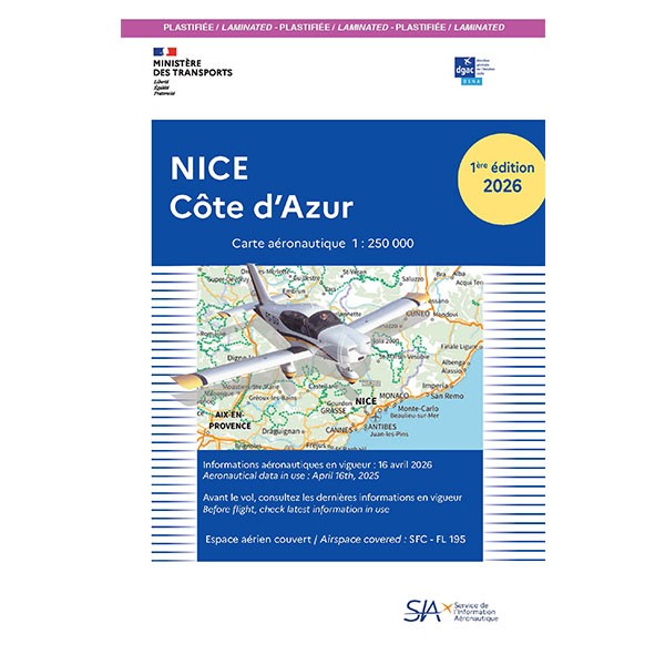 Cette carte aéronautique VFR appelée Nice - Côte d'Azur couvre une zone rectangulaire délimitée :