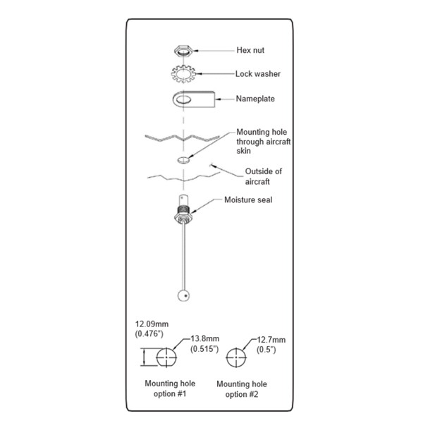 Le TA12 est facile à installer et ne nécessite qu'un petit trou dans la surface de l'aéronef.